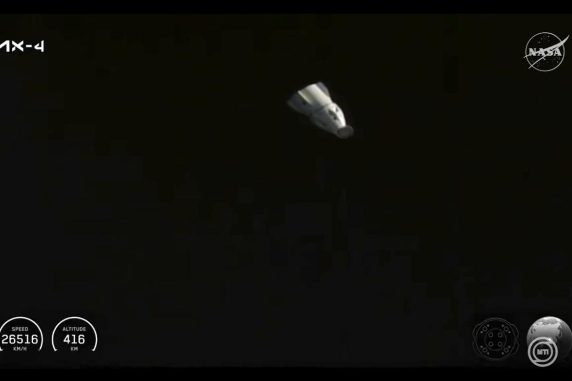 A Grace névre keresztelt kapszula 13 óra 15 perckor vált le az ISS-ről, hogy megkezdje 22,5 órás visszaútját a Földre. A visszatérés során a kapszula a légkörbe való belépése előtt leválasztotta a hátsó, úgynevezett csomagtartóját, ami megsemmisült. A kapszula több mint 27 ezer kilométeres sebességgel lépett be a légkörbe, ahol a kommunikáció ideiglenesen megszakadt, de később újból helyreállt.