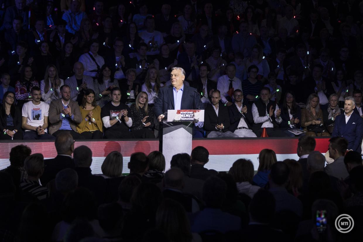 Orbán Viktor nyilatkozata a háborúellenes gyűlésen Szombathelyen