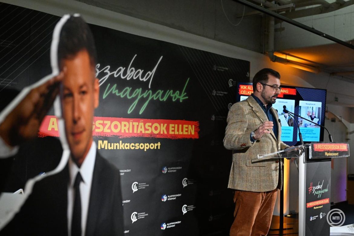 Borítókép: Budapest, 2025. december 10. Szánthó Miklós, az Alapjogokért Központ főigazgatója beszédet mond a Szabad Magyarok a Megszorítások Ellen munkacsoport alakuló ülésén a budapesti Bálnában 2025. december 10-én. MTI/Máthé Zoltán